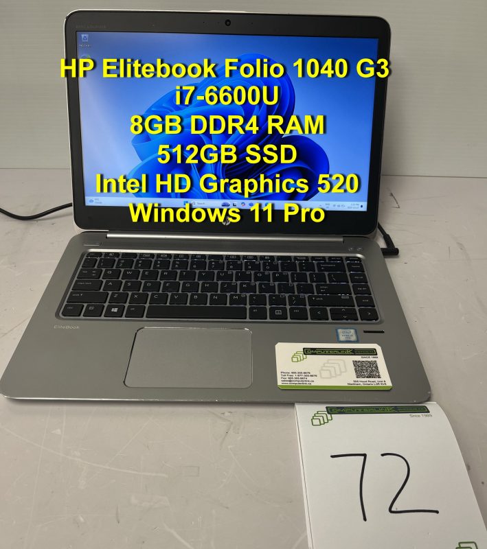 HP Elitebook Folio 1040 G3, i7-6600U, 8GB DDR4 RAM, 256GB/512GB SSD, Intel HD Graphics 520, WIN11P